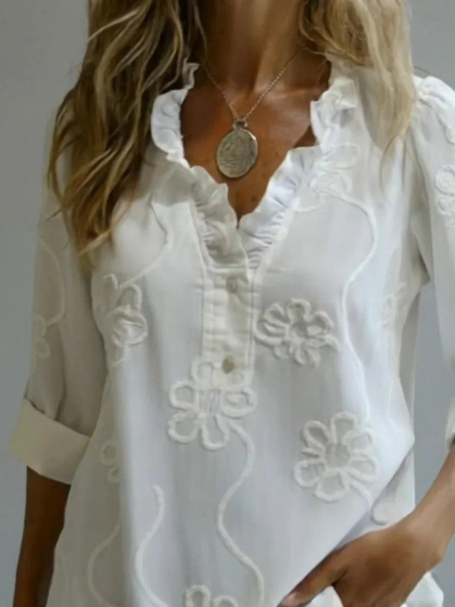 Beatrixa - Shirt With Ruffle Collar And Floral Pattern